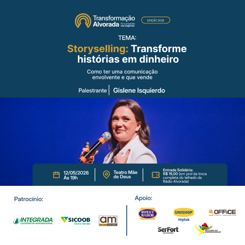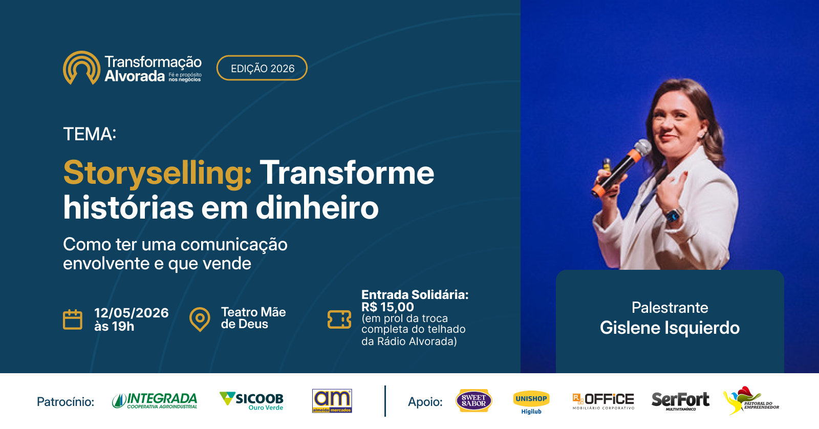 Transformação Alvorada (12/05): “Storyselling – Transforme histórias em dinheiro | Como ter uma comunicação envolvente e que vende” (GISLENE ISQUIERDO)