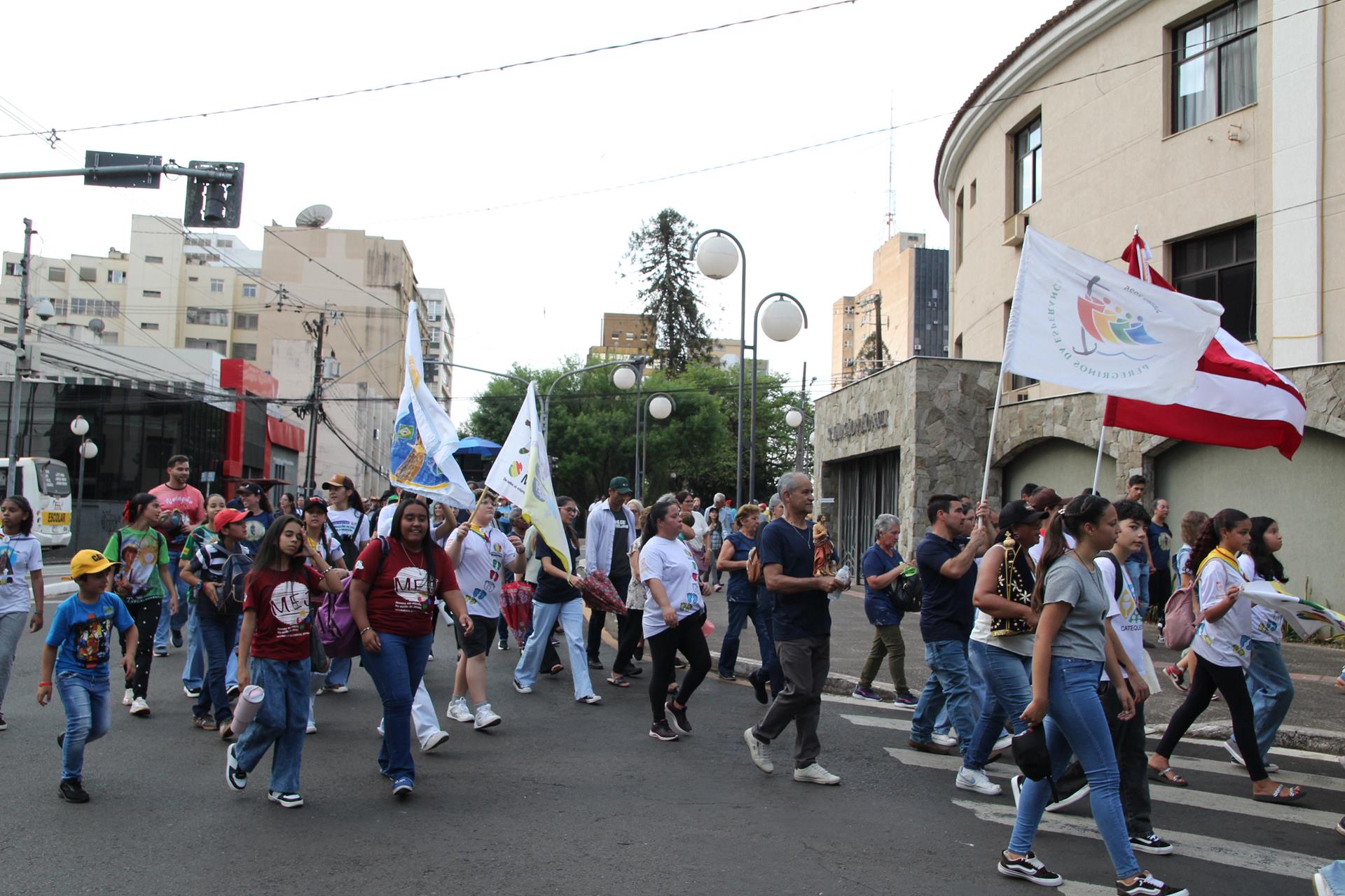 Em seguida, guiados pela esperança e com coragem diante do forte calor, cerca de 500 peregrinos seguiram em caminhada até a Catedral Metropolitana de Londrina, onde foram acolhidos pela equipe local. Ali, a Santa Missa foi presidida pelo padre Joel e concelebrada pelo padre Luciano, pároco da Paróquia São João Batista de Guaravera, e pelo padre Armando Tomé, das paróquias São José de Irerê e de Paiquerê, coroando o itinerário de fé e comunhão.
