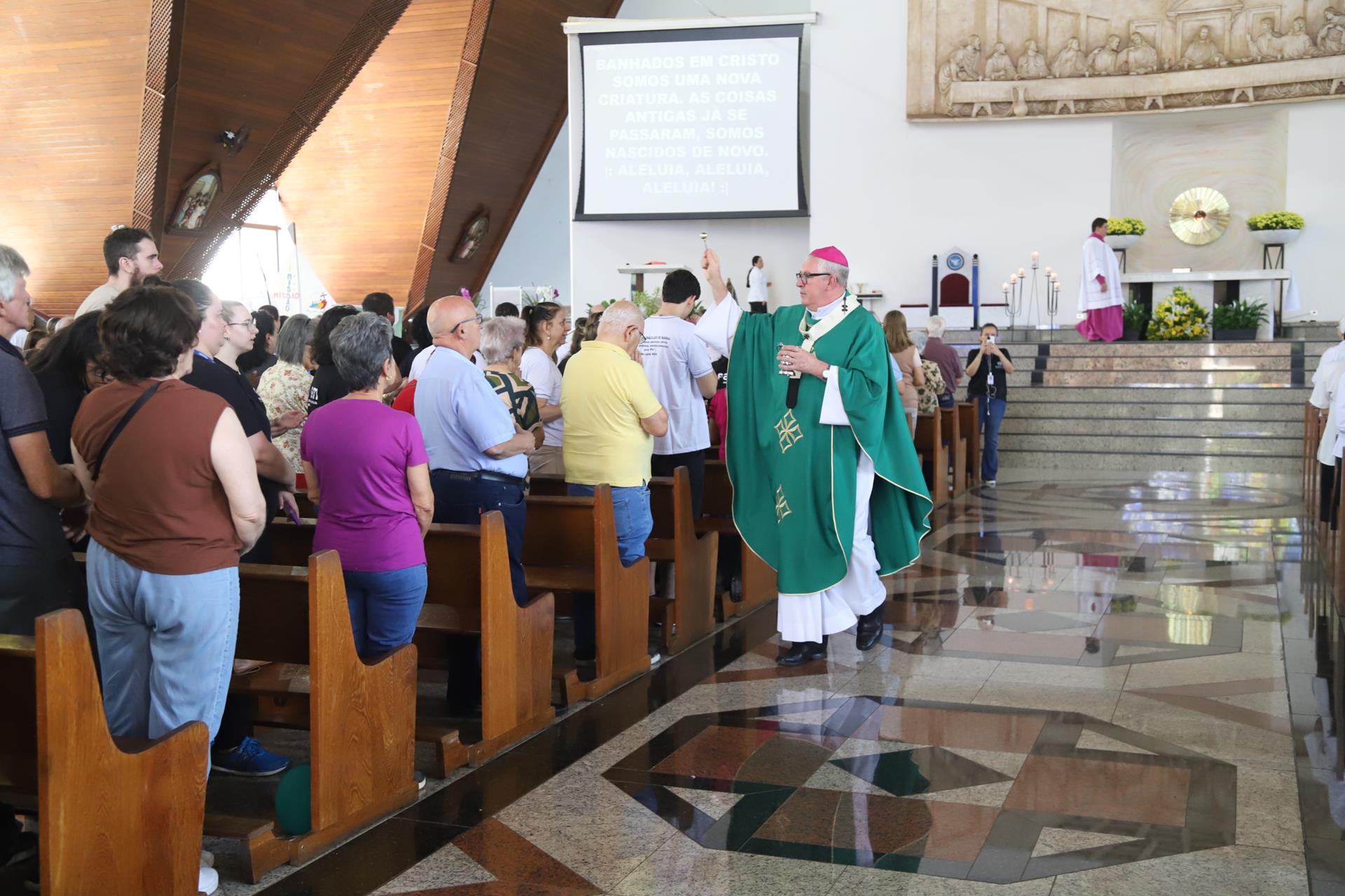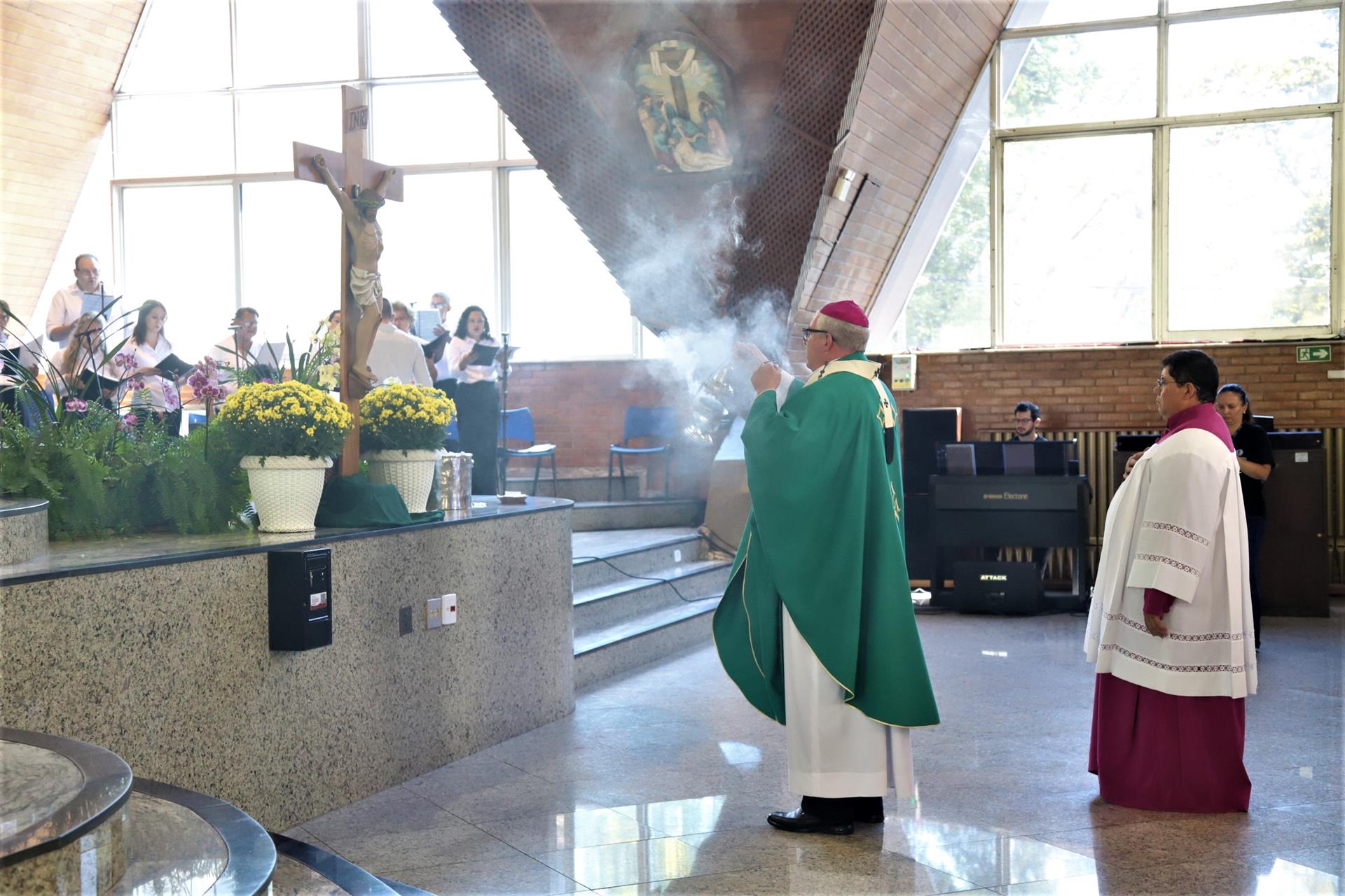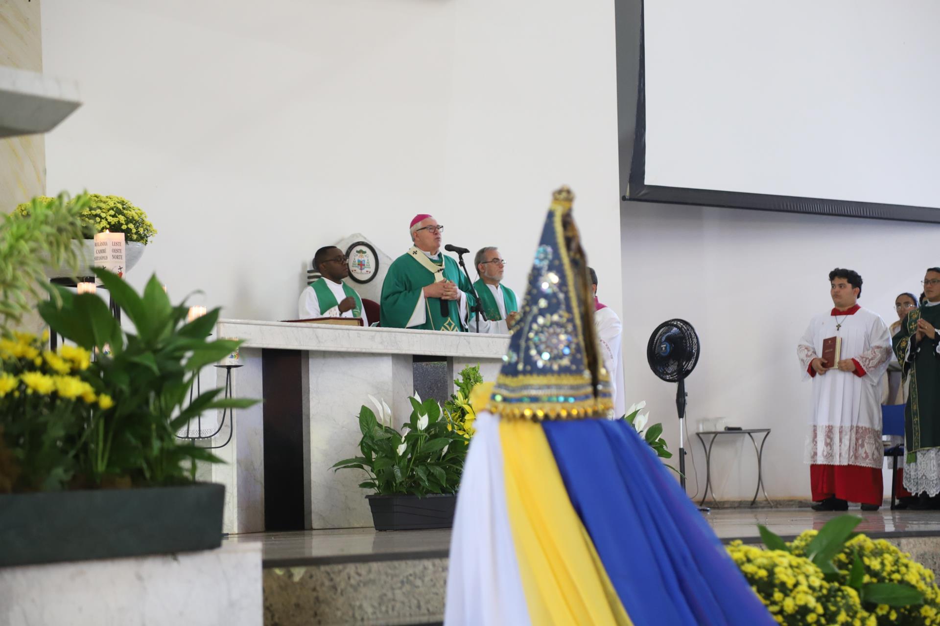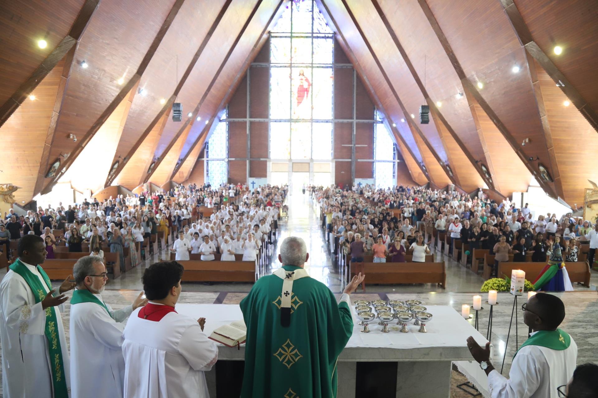 No domingo, 5 de outubro, a Catedral Metropolitana de Londrina acolheu fiéis de diversas paróquias para a Missa de abertura do Mês Missionário, presidida pelo arcebispo dom Geremias Steinmetz e concelebrada por padres da arquidiocese. A Missa também concluiu a peregrinação jubilar do Ano Santo das irmãs claretianas e da Pastoral da Comunicação (Pascom), realizada nessa manhã desde o Santuário Nossa Senhora Aparecida, na Vila Nova.