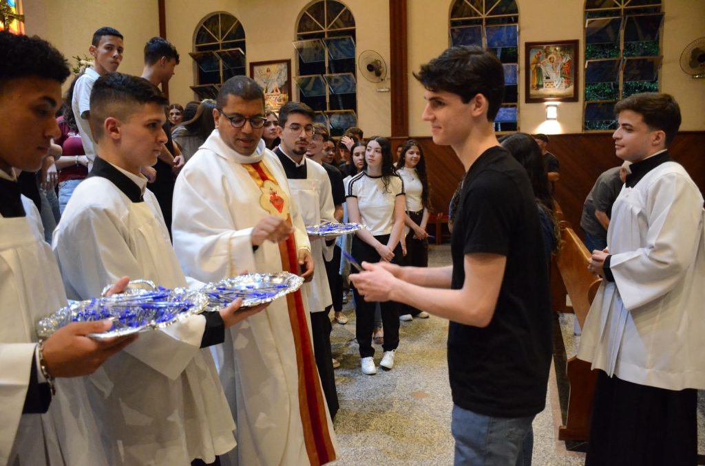 A Santa Missa foi presidida pelo Pe. Dirceu Reis, assessor do Setor Juvenil, e contou com a participação do Movimento Universidades Renovadas da Renovação Carismática Católica, do grupo de música do grupo de adolescentes RUAH da Paróquia Sant’Ana e dos acólitos da Paróquia São Lourenço.