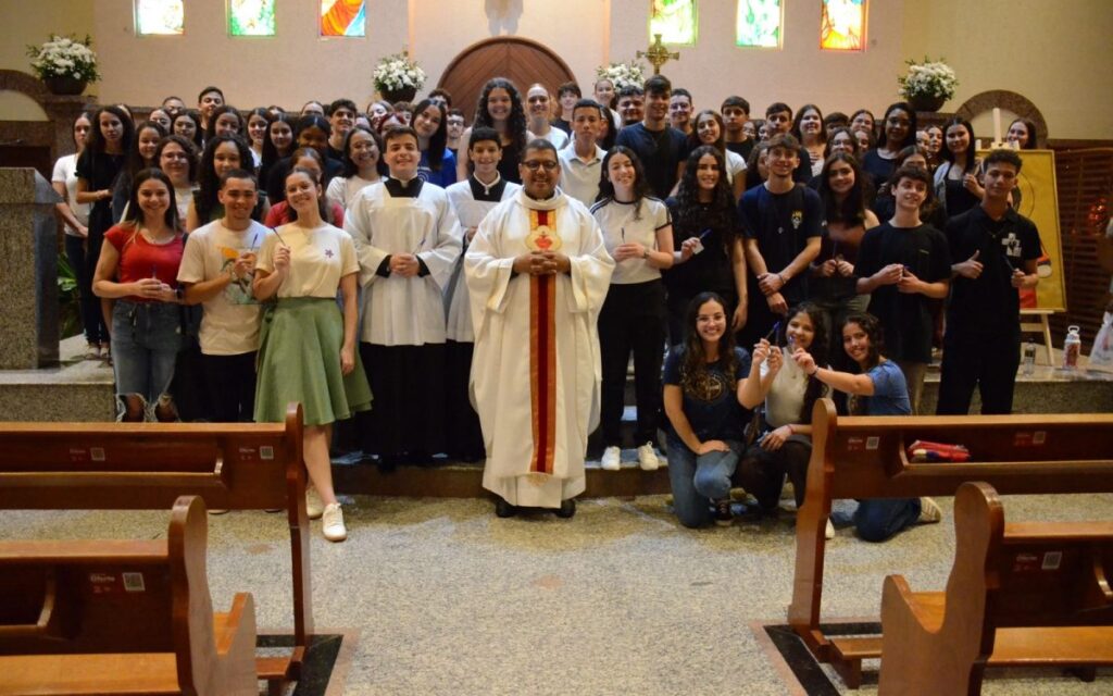 A Santa Missa foi presidida pelo Pe. Dirceu Reis, assessor do Setor Juvenil, e contou com a participação do Movimento Universidades Renovadas da Renovação Carismática Católica, do grupo de música do grupo de adolescentes RUAH da Paróquia Sant’Ana e dos acólitos da Paróquia São Lourenço.