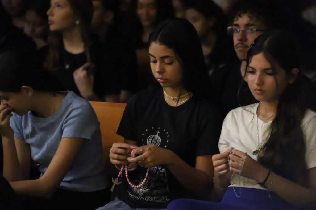Na noite da última quinta feira, 12 de março, mais de 400 participantes se reuniram na Paróquia Sagrados Corações, Decanato Centro, para o primeiro Terço Jovem de 2026. Durante esse ano as quatro edições serão realizadas nessa paróquia e, por isso a coordenação arquidiocesana agradece a generosidade e abertura do pároco, Pe. José Onero.