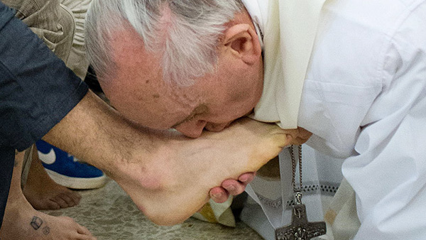 (Papa durante rito de lava-pés / Foto: Arquivo – L’Osservatore Roman)