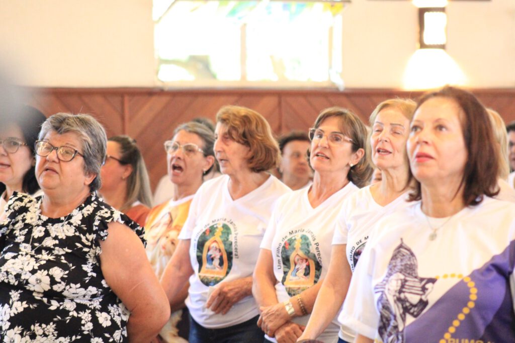 Após a celebração houve a acolhida oficial dos decanatos presentes, também um café da manhã no pátio da paróquia. A Ir. M. Ivone conduziu a formação do encontro falando do legado de João Luiz Pozzobon. Como herdeiros desta missão, “queremos seguir os passos do Servo de Deus e oferecer como presente jubilar uma Campanha renovada e fiel à origem”. Após o almoço, também servido na paróquia, houve um retrospecto da Visita da Mãe nas cidades. Os participantes receberam uma rosa vermelha e o Zezinho, mascote da paróquia, que marcou presença para abraçar as crianças e a todos. Um dos momentos mais emocionantes foi a coroação da Mãe Rainha e Vencedora com a participação das crianças. Por fim, para a conclusão do encontro foi realizado um momento de adoração ao Santíssimo Sacramento, confiando a Cristo a missão de levar a Mãe Rainha a muitos lares ainda carentes da presença de Jesus, nosso Salvador.